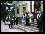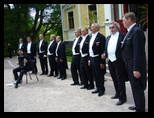Mieskuoro Operamento Pyhäniemen kartanon avajaisissa 2012. Kuvat: Tuula Kuukka