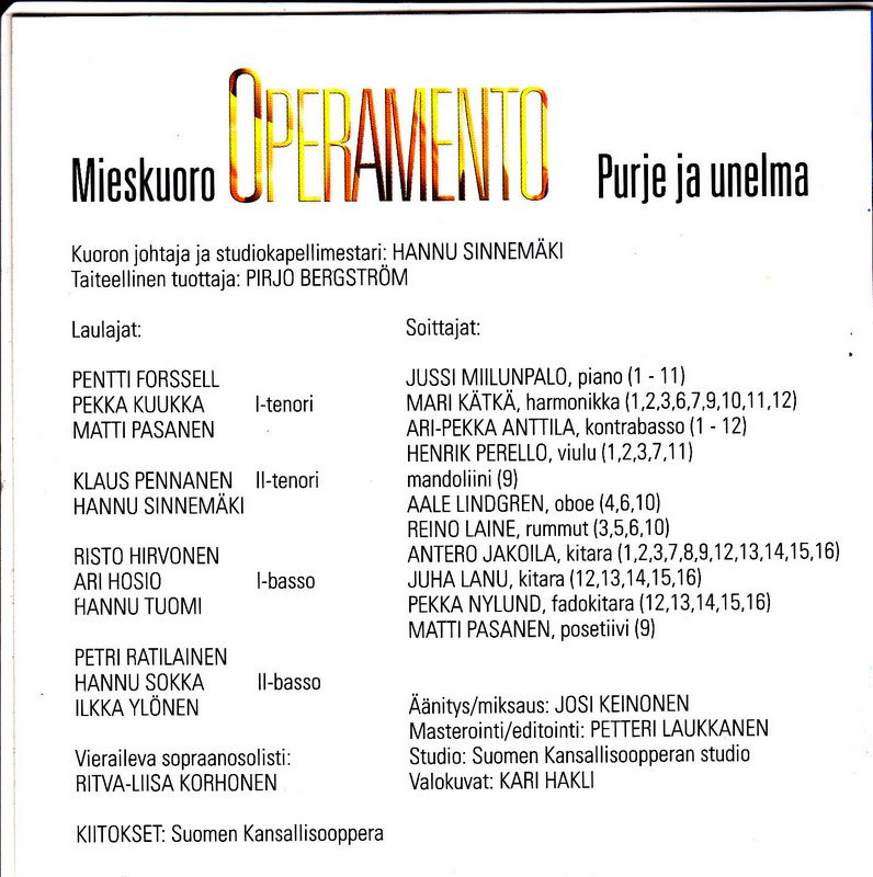 Vuonna 1994 pyysivät Suomen Kansallisoopperan Kuoron laulajat Pekka Kuukka ja Hannu Sokka kollegaansa